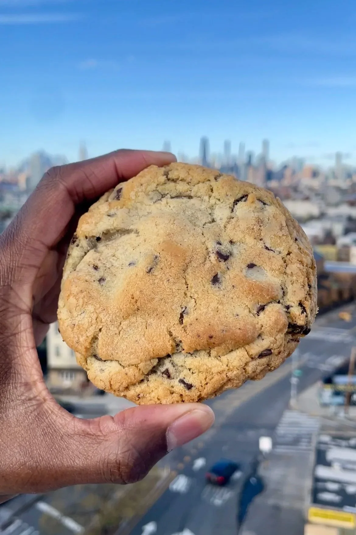 A buttery, award-winning masterpiece with crispy edges and a soft, chewy center loaded with chocolate chips.
